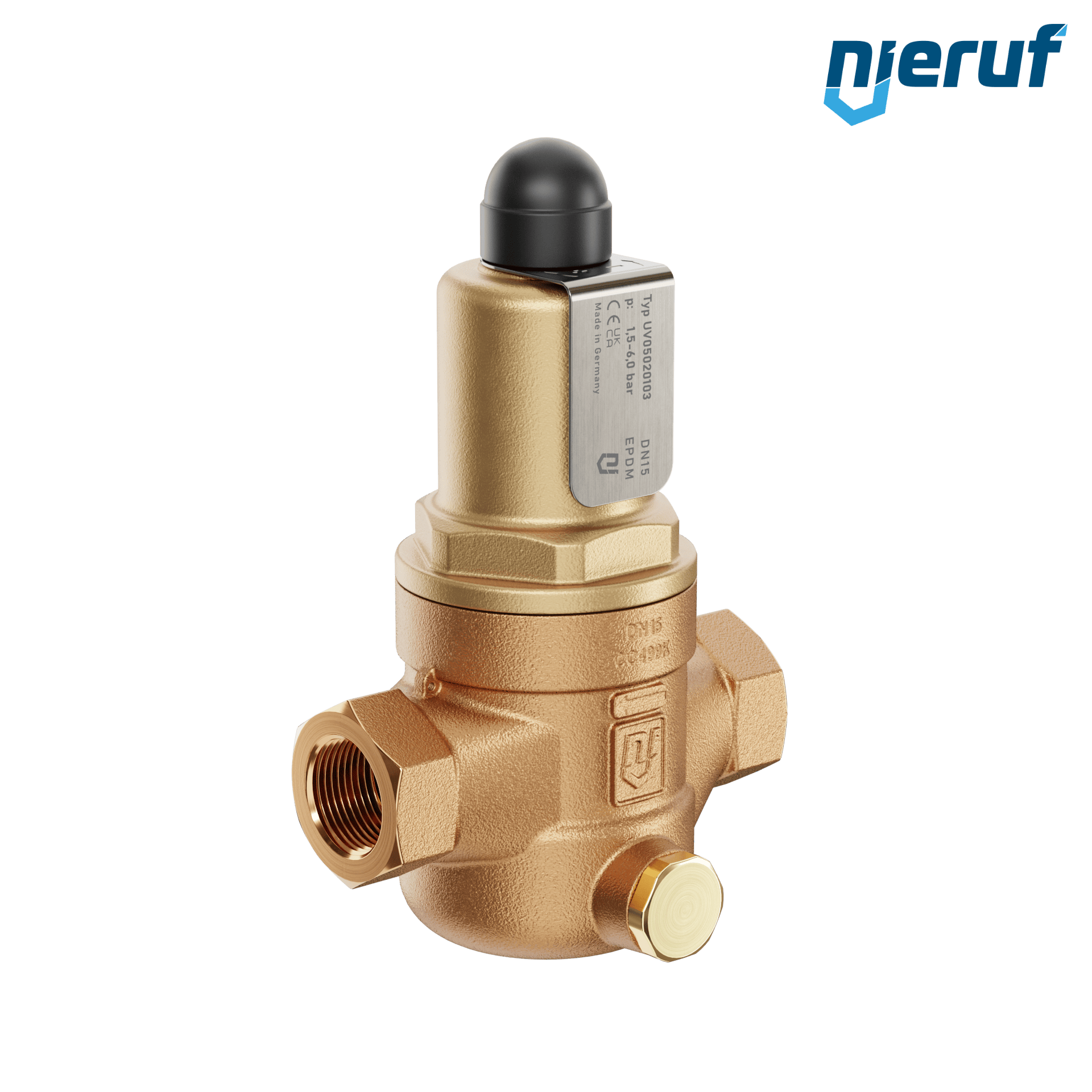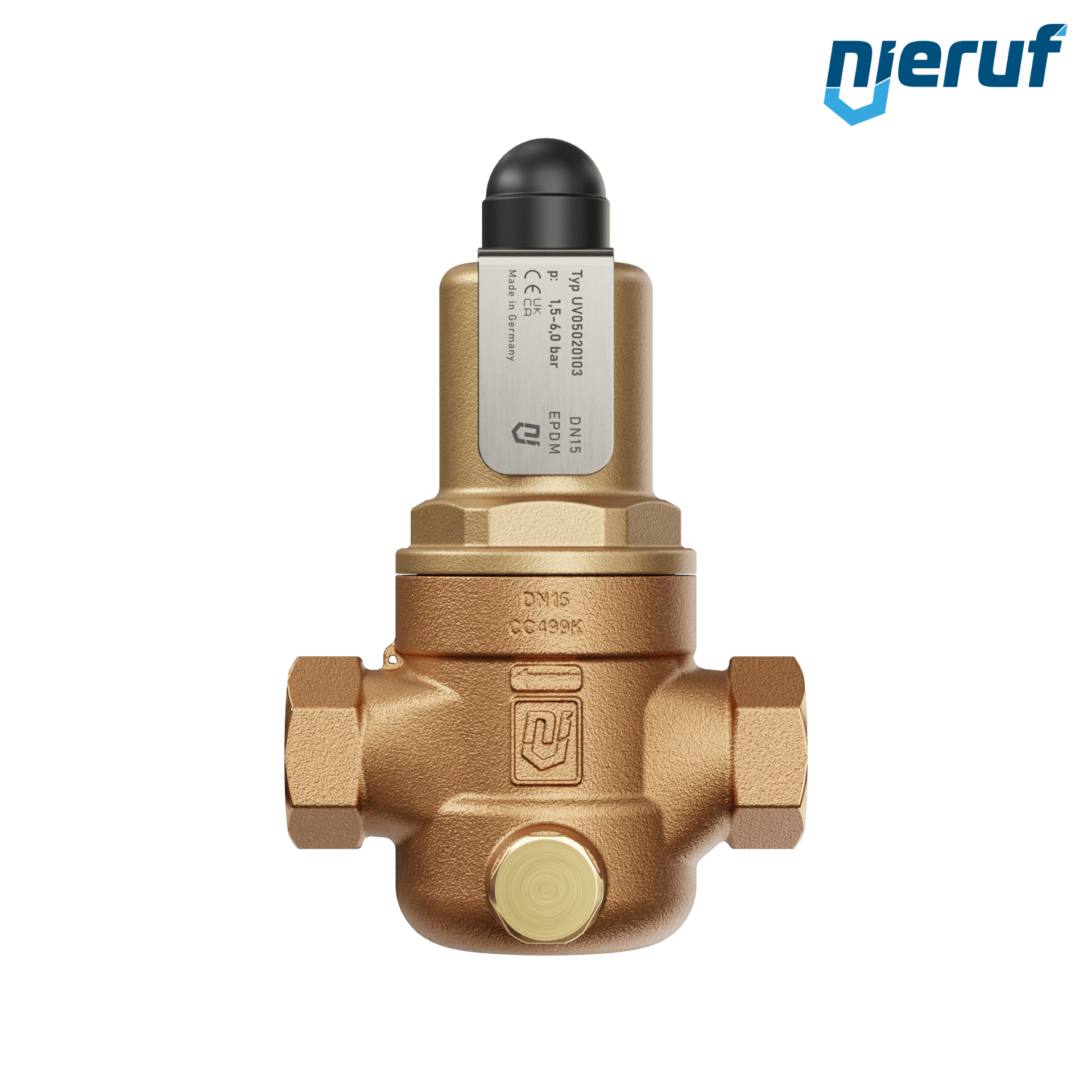 Przelotowy zawór przelewowy 1/2" cala GW typ UV05 z brązu/mosiądzu zakres ustawienia 1,5 - 6,0 bar uszczelnienie EPDM do płynnych i gazowych mediów
