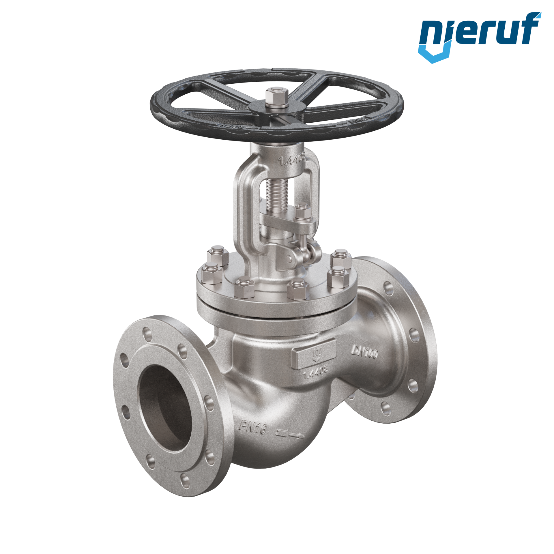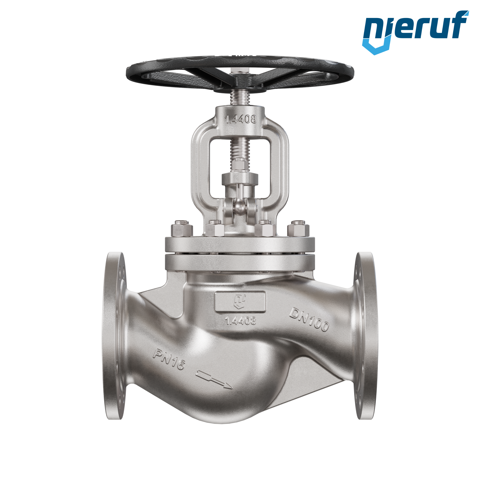 Zawór zaporowy AV08 DN100 PN16 Przelotowa budowa Kołnierz zgodnie z DIN EN 1092 materiał stal nierdzewna 1.4408 / CF-8M