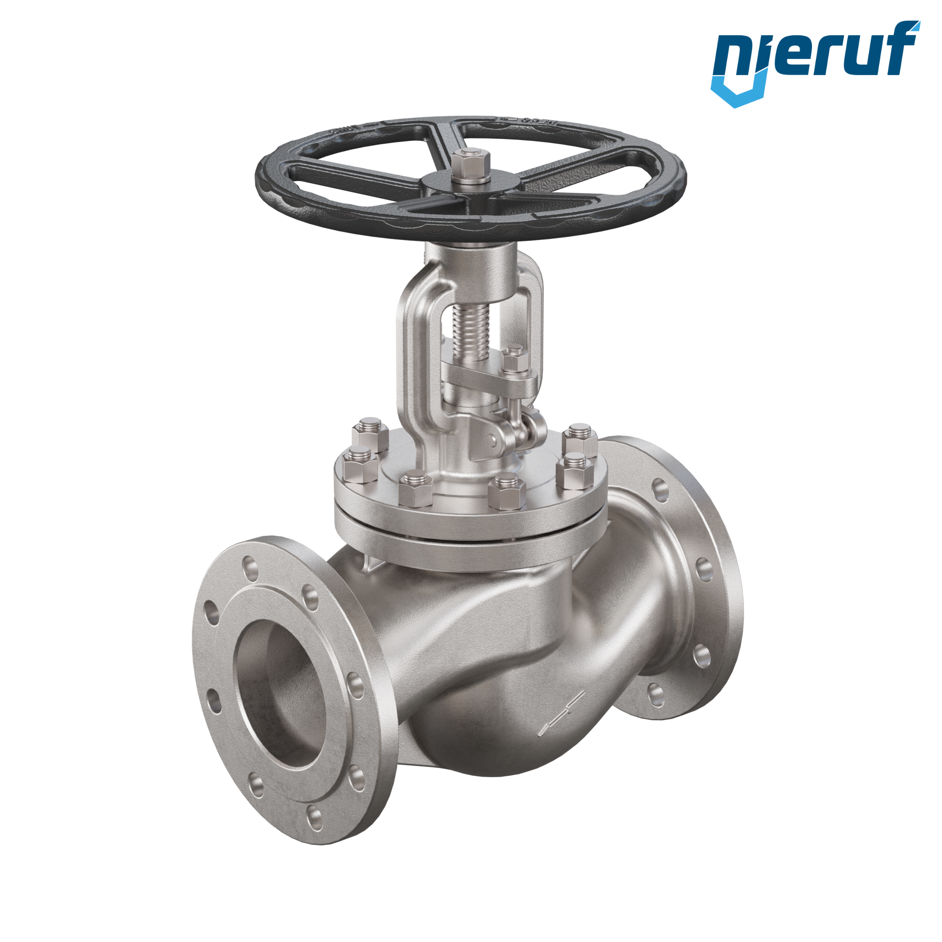 Zawór zaporowy o konstrukcji przelotowej z przyłączem kołnierzowym, podnoszonym trzpieniem i podnoszonym pokrętłem. Z zatwierdzeniem TA-Luft 2021 i ATEX 2014/34/UE.