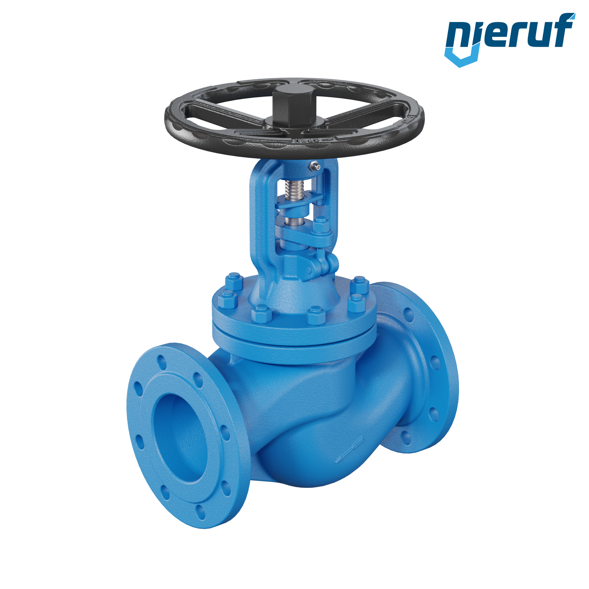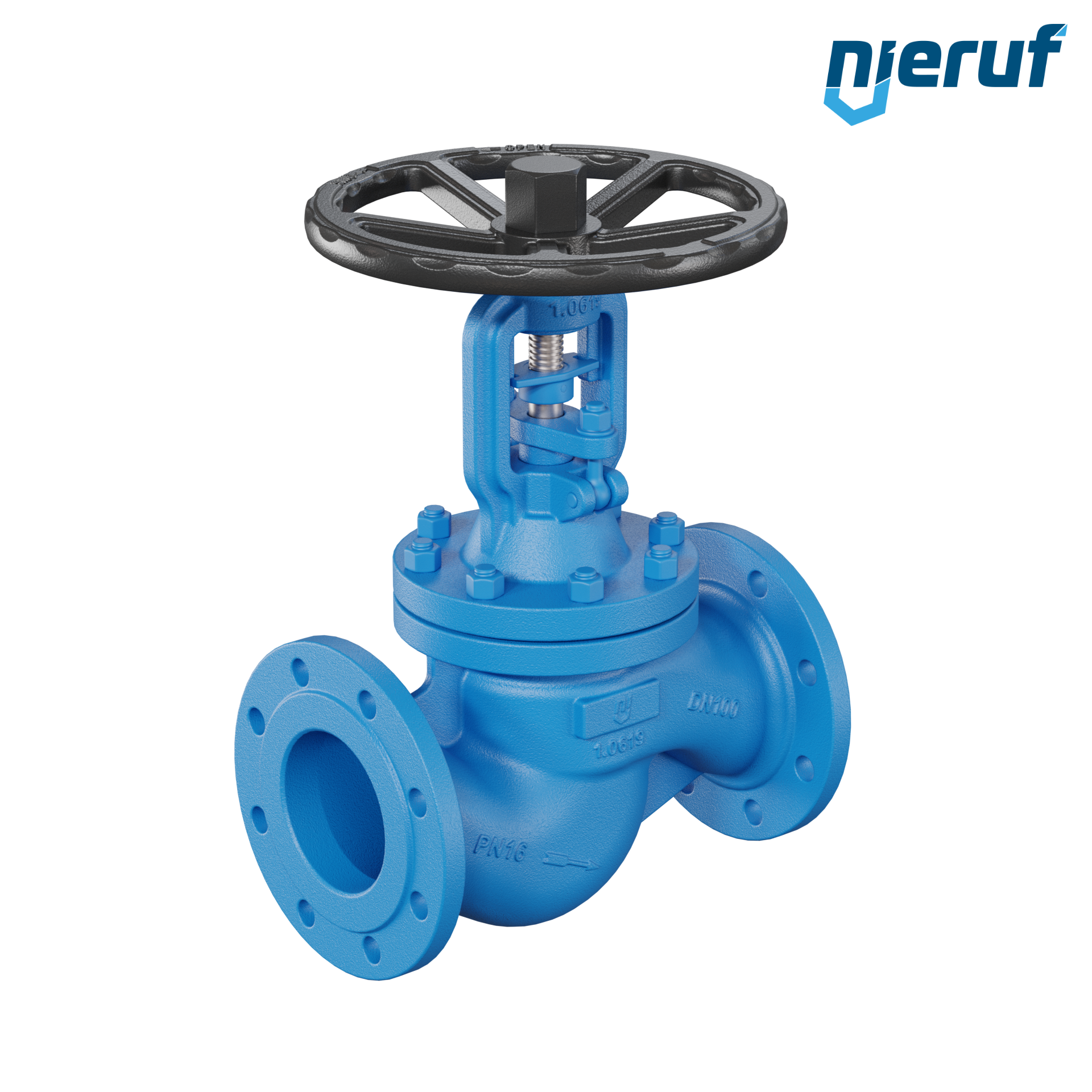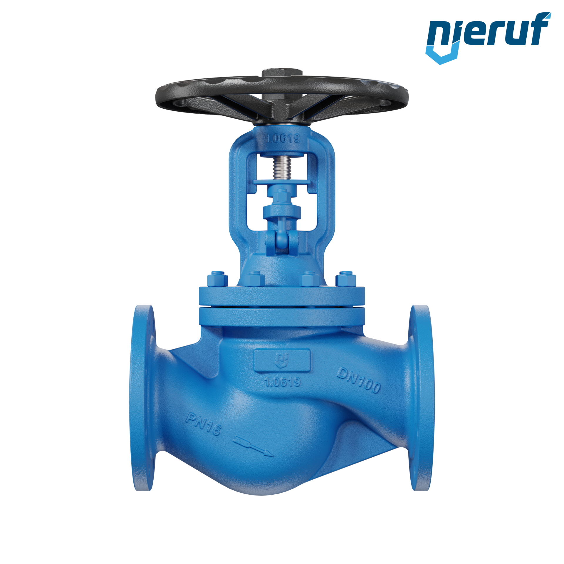 Zawór zaporowy AV05 DN100 PN16 Stożek dławiący Przelotowa budowa z mieszkiem Kołnierz zgodnie z DIN EN 1092 materiał Staliwo 1.0619+N