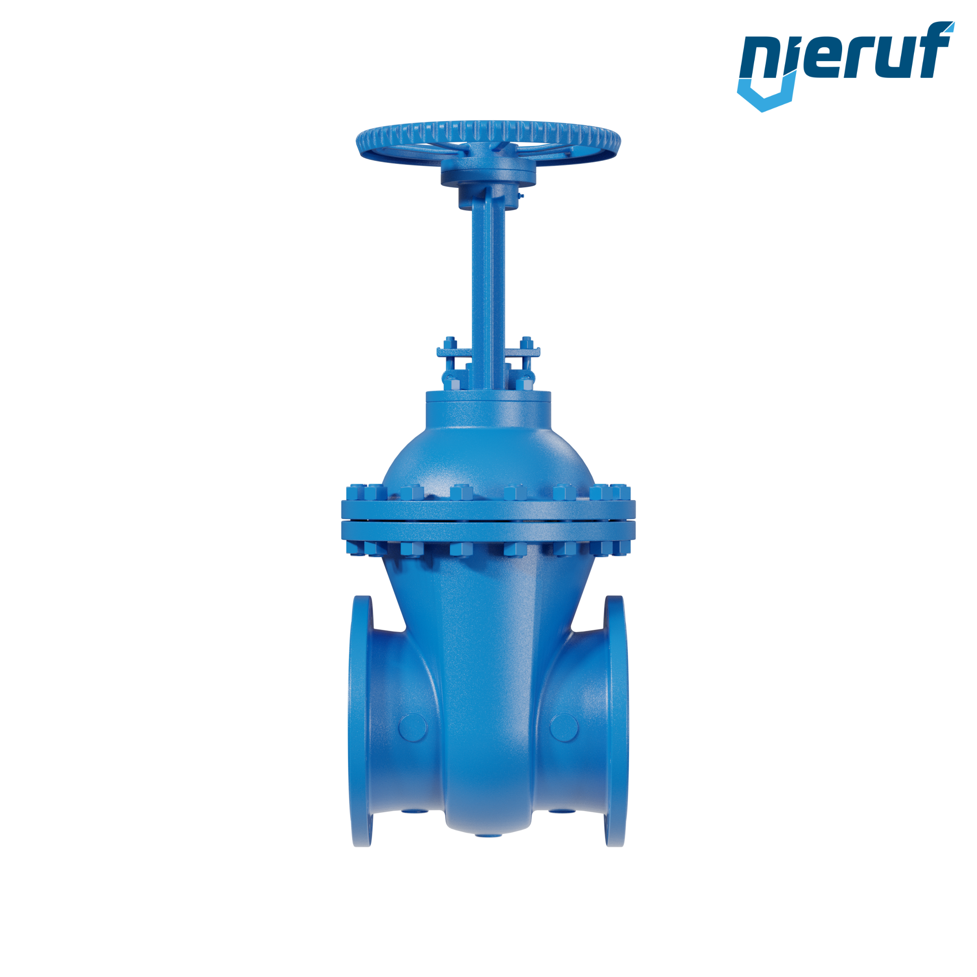 zasuwa okrągłoklinowa w formie przelotowej z przyłączem kołnierzowym oraz ze wznoszącym się wrzecionem i nierosnącym kołem ręcznym. z dopuszczeniem TA-Luft 2021 i ATEX 2014/34/EU.