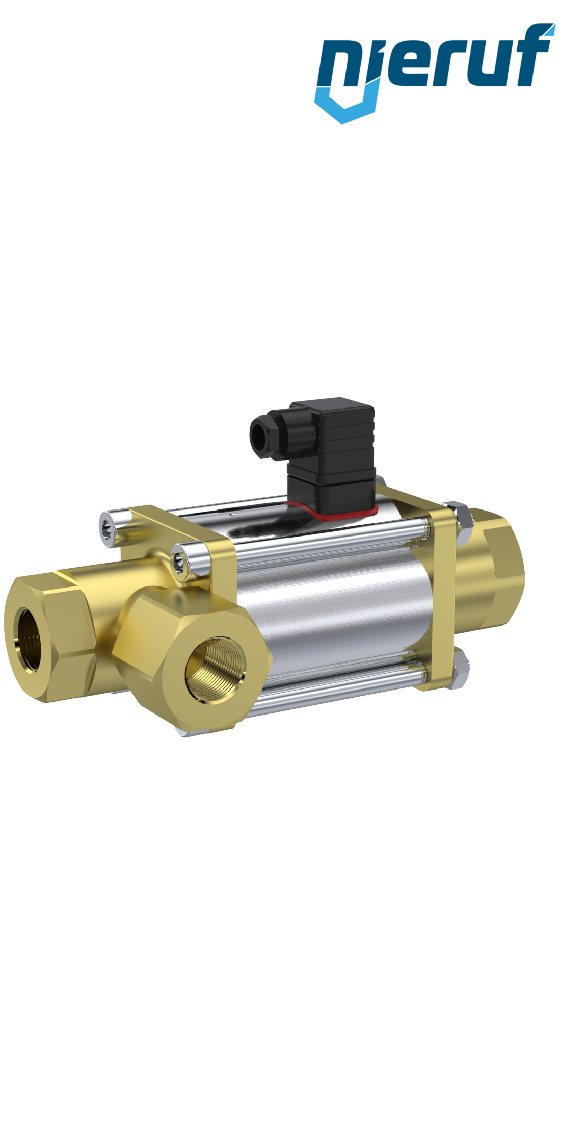 3/2 - drogowy zawór współosiowy 3/8" cala gwint wewnętrzny z mosiądzu, sterowany bezpośrednio do maks. 40 bar, NO - normalnie otwarty, napięcie 230V AC - do wody