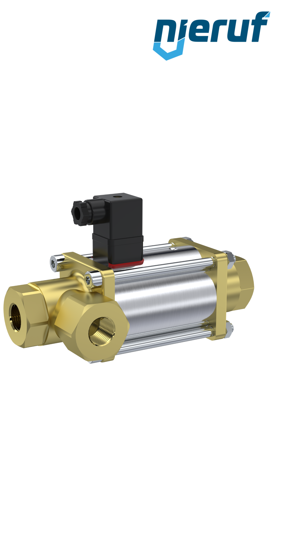 3/2 - drogowy zawór współosiowy 1/2" cala gwint wewnętrzny z mosiądzu, sterowany bezpośrednio do maks. 40 bar, NC - normalnie zamknięty, napięcie 230V AC
