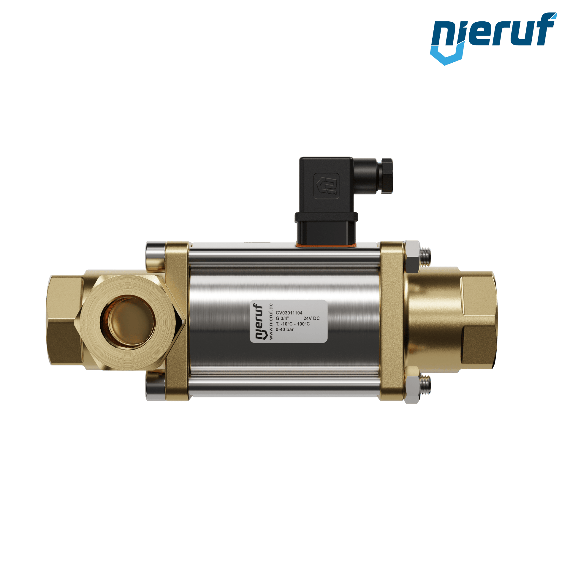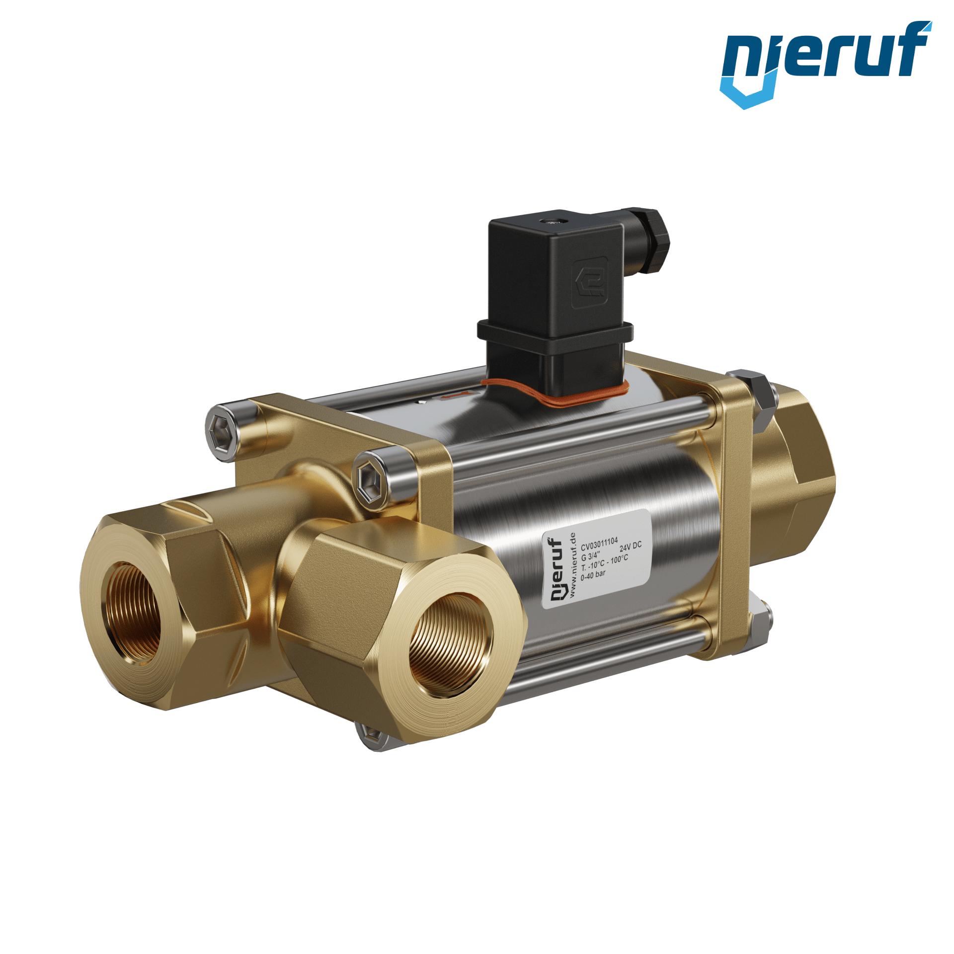 3/2 - drogowy zawór współosiowy 3/4" cala gwint wewnętrzny z mosiądzu, sterowany bezpośrednio do maks. 40 bar, NO - normalnie otwarty, napięcie 24V DC - do wody