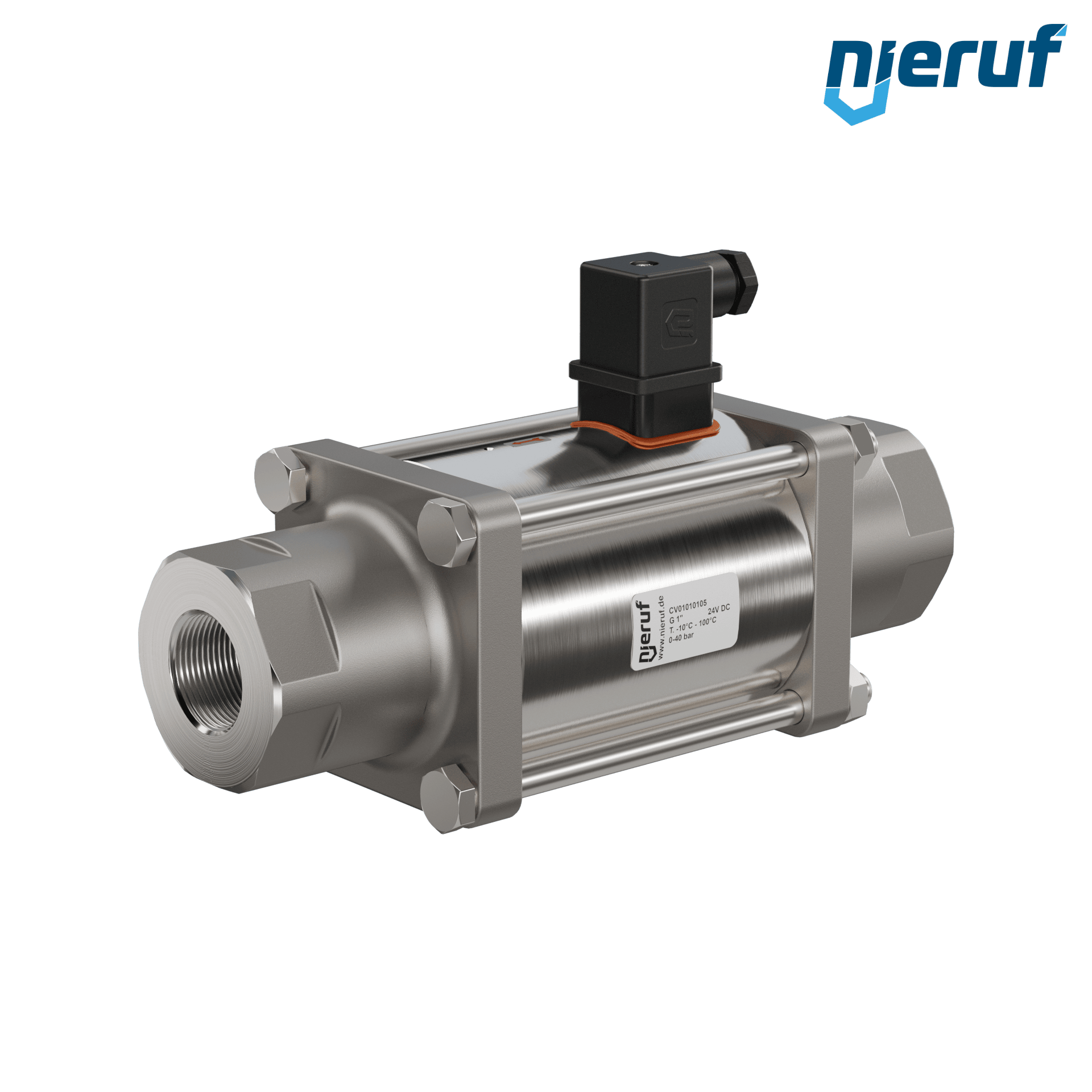 2/2 - drogowy zawór współosiowy 1" cal gwint wewnętrzny z mosiądzu, sterowany bezpośrednio do maks. 40 bar, NO - normalnie otwarty, napięcie 24V DC